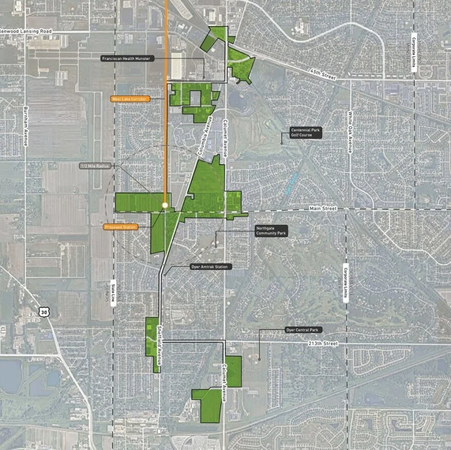 But some of the proposed transit development districts stretch far beyond the train stations they're designed to serve. East Chicago's extends north along Indianapolis Boulevard all the way to Columbus Drive, while a cross section includes most of Chicago Avenue from White Oak to Parrish.