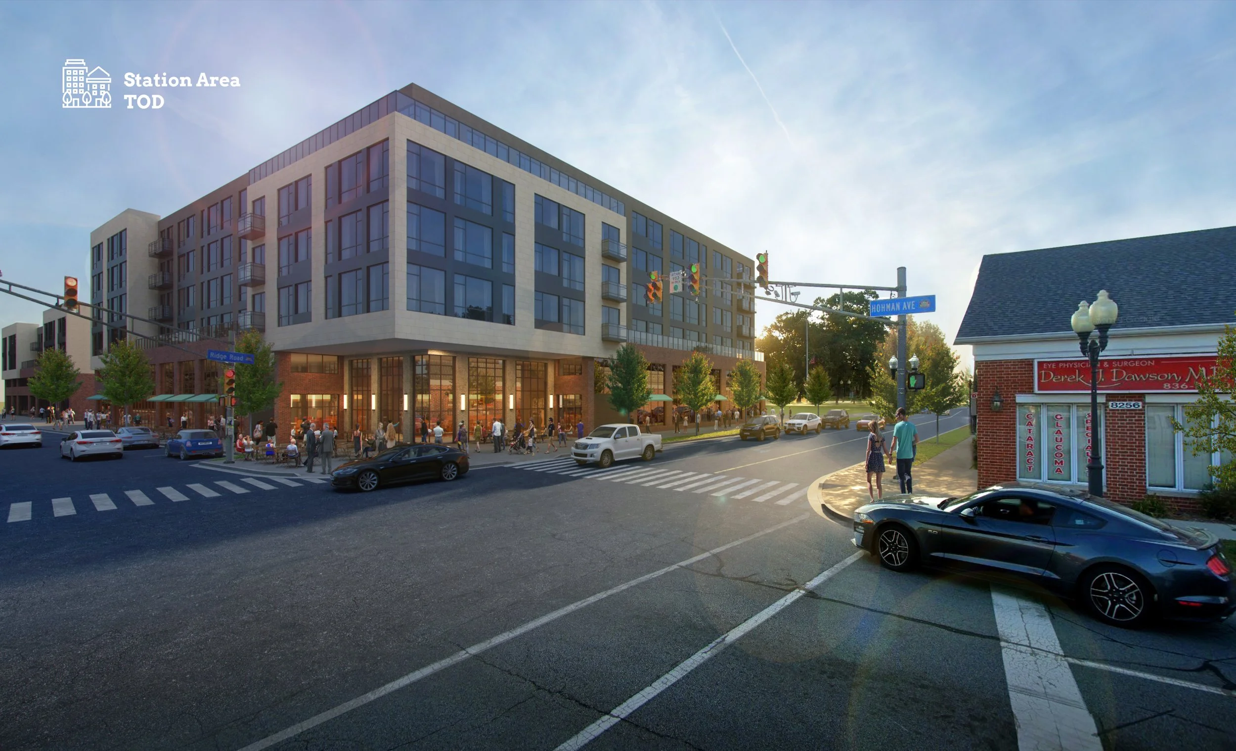 Conceptual rendering of development near the future Ridge Road Station (Site B2).