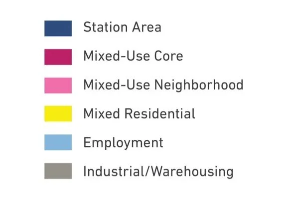 Areas of Impact were established to distinguish between major (re)development areas, both TOD and non-TOD, and areas to be maintained, preserved, and enhanced. These designations begin to direct development activity and other targeted investments based on proximity and relationship to the station area.